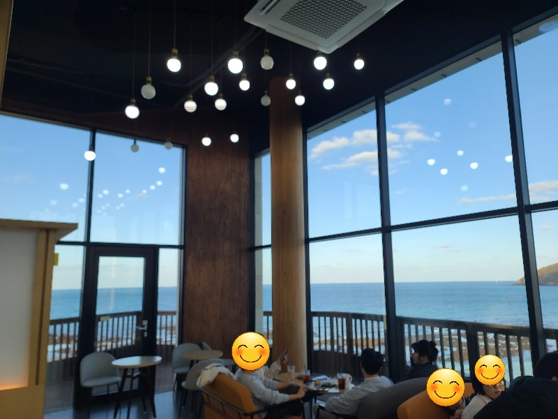 3, 4, 5층 전층이 통유리로 되어 있어 앉아서도 아름다운 바다를 보며 커피를 마실 수 있지만 5층에는 테라스로 나가는 문이 있어 밖으로도 나가 아름다운 바다를 감상하고 사진으로 담을 수도 있다.