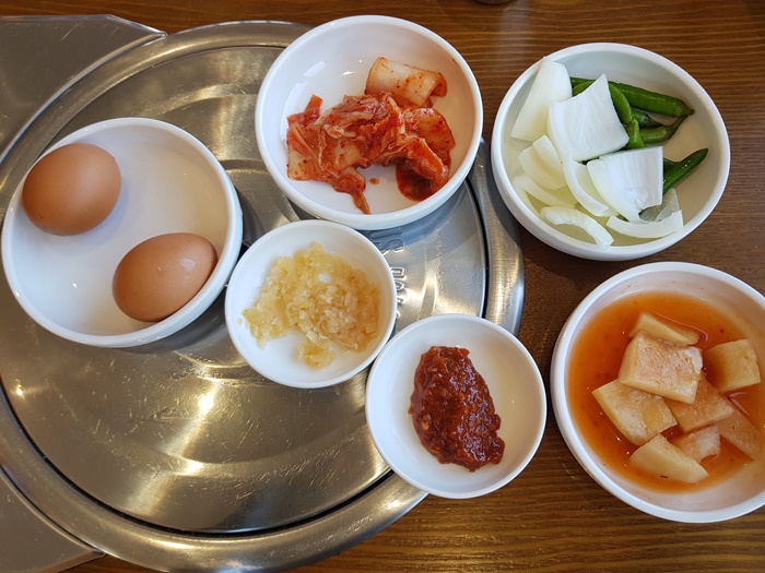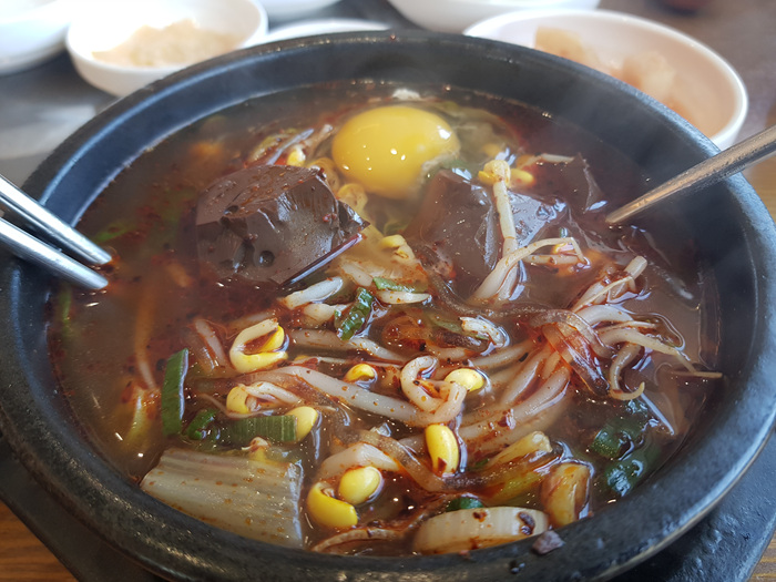 맛을 보면 그렇게 차이가 나지 않아 보이지만 그래도 대부분 사람들은 제주도 여행을 오면 유명한 곳을 들립니다. 저도 그랬으니까요.. 하지만 요즘엔 알뜰족등 나름대로 저렴하면서도 맛도 있고 양도 푸짐한 곳들을 공유하는 SNS가 많아 잘 찾아보면 가성비 좋은 음식점들이 은근 많습니다. 이곳도 그 중에 한 곳입니다. 해장국을 주문하면 반찬도 여느 해장국집처럼 나오고 달걀까지 나옵니다.