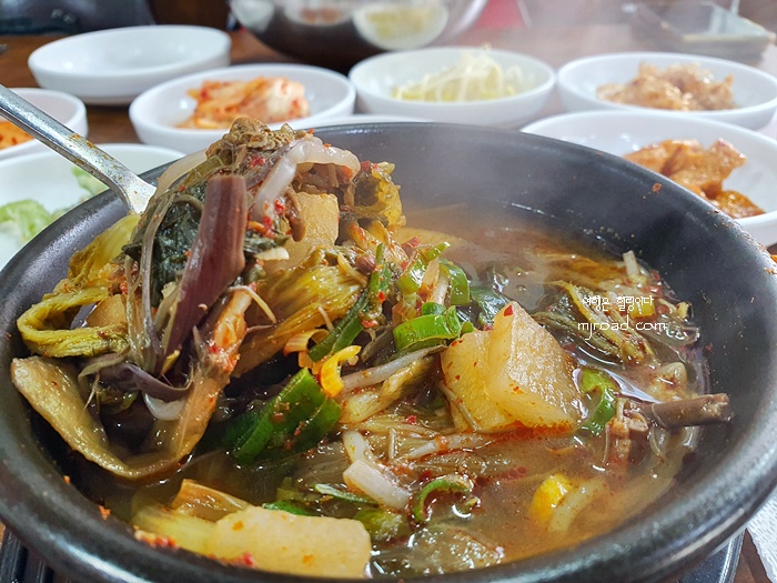 정식을 주문했는데 뚝배기에 고깃국이 나왔다. 건더기도 푸짐하고 든든한 한 끼 식사로 손색이 없었다. 정식메뉴 사진에는 고등어 구이가 있었는데 고등어 구이 대신 국을 제대로 끓여서 준 것 같았다. 정식은 뭐 주인장 마음대로일때가 있으니까...