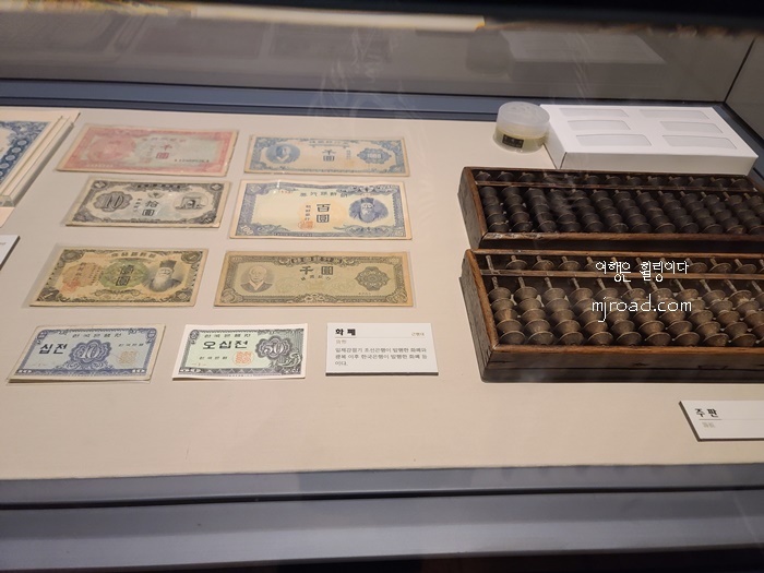 정말 오래된 지페의 모습과 나무로 된 주판이 그 시대 사람들의 모습을 조금이나마 상상하게 만들었다.