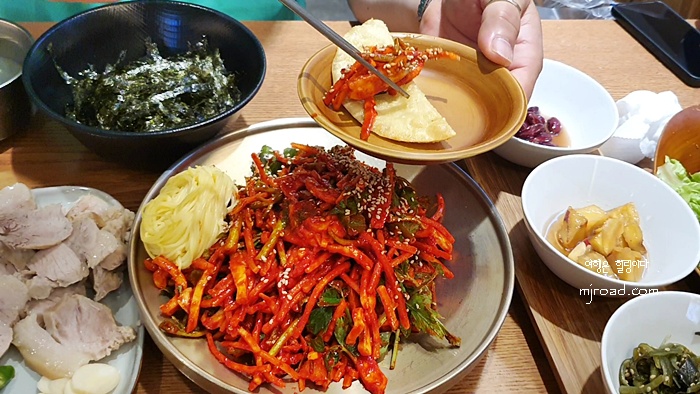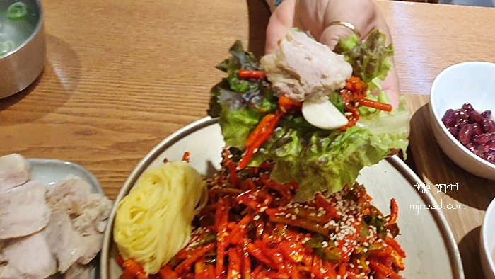 오징어 무침은 만두와 먹느냐? 수육과 먹느냐? 두가지 부류가 있는데 난 수육을 올려 먹으니 괜찮았던 것 같다.