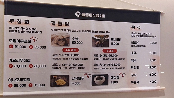 무침회 종류는 몇 가지 된다. 우린 사람들이 제일 많이 시켜 먹는다는 오징어무침회를 주문했다.