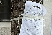 콘크리트 벽사이로 나뭇가지가 뚫고 나 온 모습이었지요.
