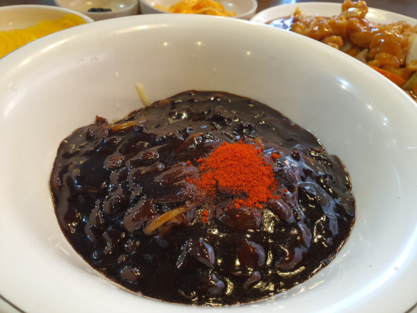 짜장면에는 고추가루 뿌려서 먹으면 느끼함이 많이 없어서 예전부터 그렇게 먹는 습관이 생겼어요. 하여간 그냥 먹는 것 보다 이렇게 먹으면 더 맛나더라고요.