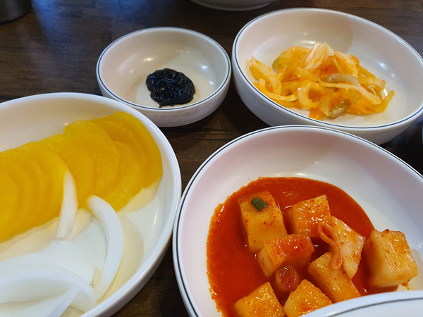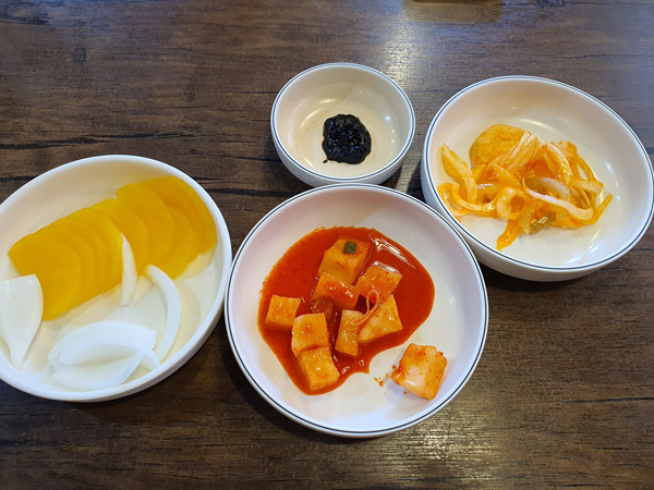 찬은 단무지, 양파 그리고 양파김치와 깍두기가 나왔습니다. 중국집에서 깍두기가 나오니 왠지 반가운 느낌도 들고 좋더라고요. 기름기 많은 중국음식엔 김치나 깍두기 반찬이 최고인 것 같아요.