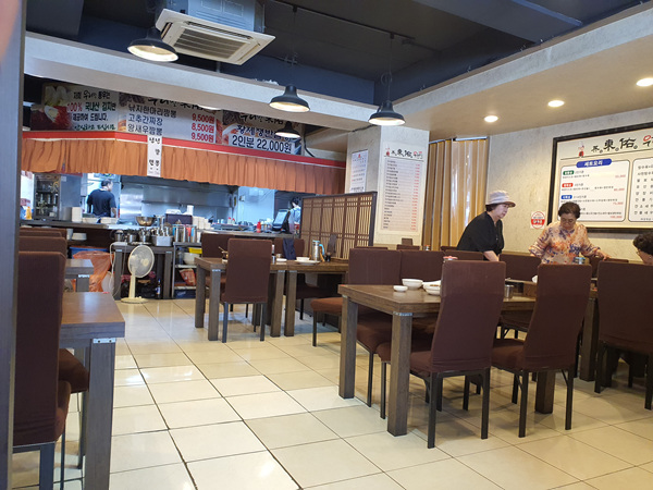 사실 이곳을 들어 오기 전에 주변에 여러 군데의 음식점을 오면서 보긴 했는데 ' 딱 이집이다! ' 하고 들어갈 만한 곳이 없더라고요. 그래서 일단, 손님이 많고 가게가 조금 큰 이곳을 선택해 들어 갔지요. 가게 안은 청결했고 무엇보다도 손님들이 계속 들어 오는 것을 보니 아무래도 심상치 않은 그런 동네 맛집 같았습니다.