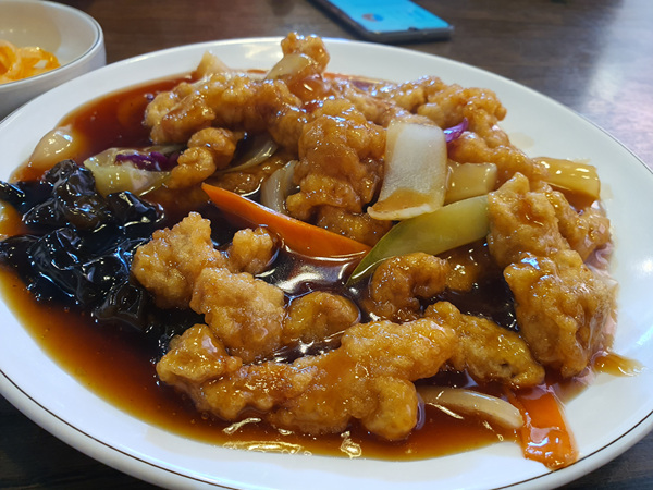 기본 요리처럼 보이는 탕수육입니다. 양이 제법 많아서 사실 짜장면 먹고 탕수육까지 다 먹으려니 배가 불러 터질 지경이었어요. 양을 많이 드시는 분들은 필히 이곳에서 탕수육 세트 주문하는거 추천합니다. 가격대비 가성비 짱!