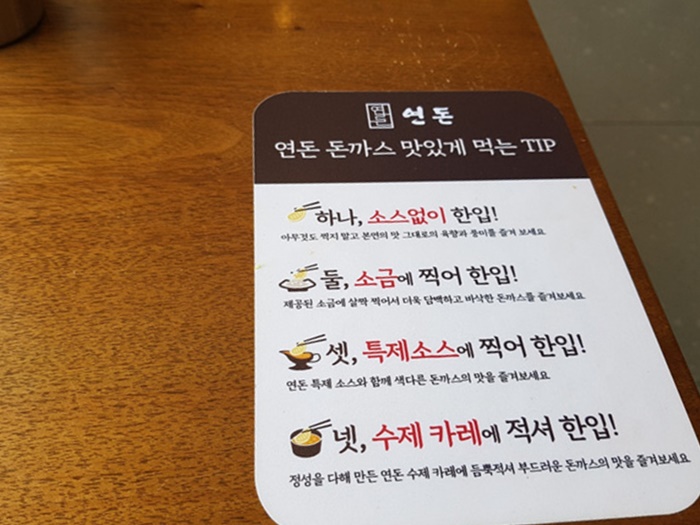 돈까스 먹는 법도 자세히 나와 있는데요. 소금에 찍어 먹는게 조금 독특했습니다.