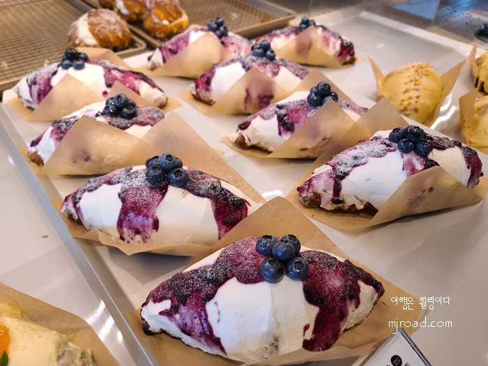 평소 우리가자주 보던 그런 빵들이 아닌 새로운 디저트들이 가득 있더라고요. 가격대는 조금 비싼 편이었는데 크기도 제법 커서 대부분 한 개로 나눠 먹는 분위기였답니다.