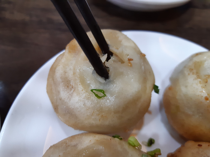 만두 속은 육즙 가득, 만두 위의 피는 보들보들 아래 피는 구워서 그런지 군만두처럼 그렇습니다.