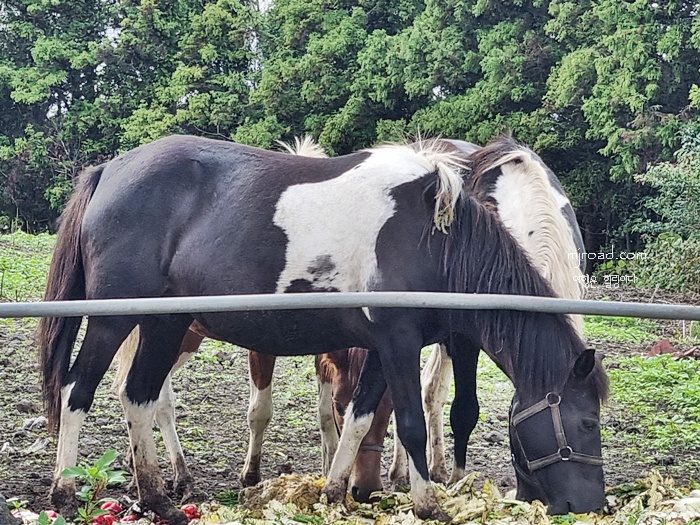 사각사각 소리를 내며 맛있게 먹고 있는 것은 배추다. 예전에는 무를 먹는 모습도 참 특이 했었는데 이번에 배추에 피망을 먹고 있었다. 말들의 모습도 어찌나 깨끗하던지 역시 푸른 자연에서 살고 있는 말은 뭔가 다르다는 생각도 들었다.