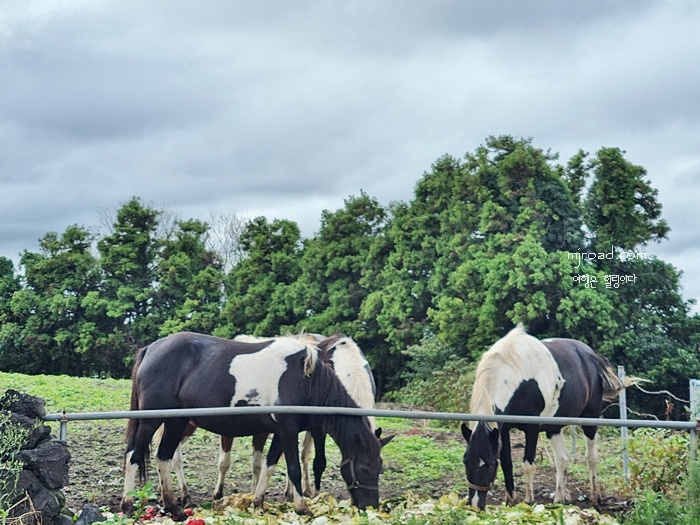제주도 여행을 하다보면 푸른 초원에서 쉬고 있는 말들을 자주 보게 된다. 어딜가나 말들의 풍경을 볼 수 있는 제주도는 사람들의 시선을 사로 잡기에 충분한 곳이기도 하다. 며칠 전 밥을 먹고 지나가다 말들이 맛있게 뭘 먹는 모습에 잠깐 차를 세워서 구경하게 되었는데 어찌나 먹는 소리까지 특이하고 이쁘게 보이던지 멀 발취에서 휴대폰 카메라를 줌으로 하고 사진과 동영상을 찍게 되었다.
