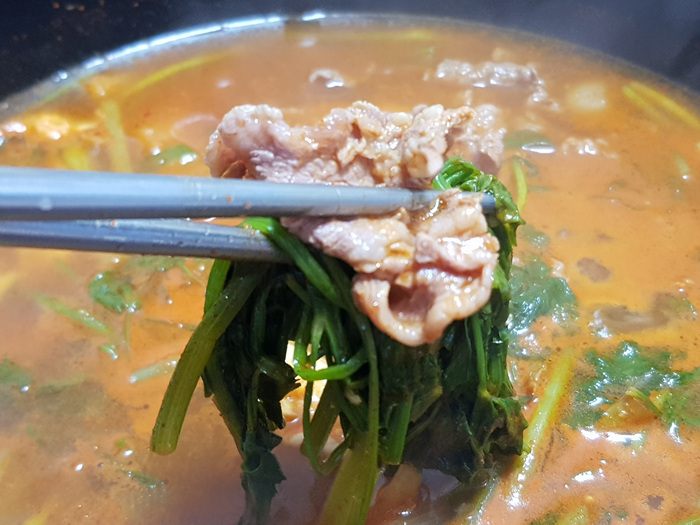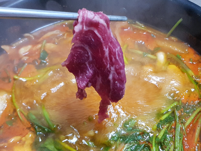 팔팔 끓을때 고기를 넣고 익혀 먹으면 되는데요. 신선해서 그런지 고기가 어찌나 야들야들한지 놀랐습니다.