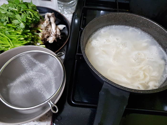 그리고 칼국수는 한 번 삶아서 찬물에 헹궈 준비했고요..