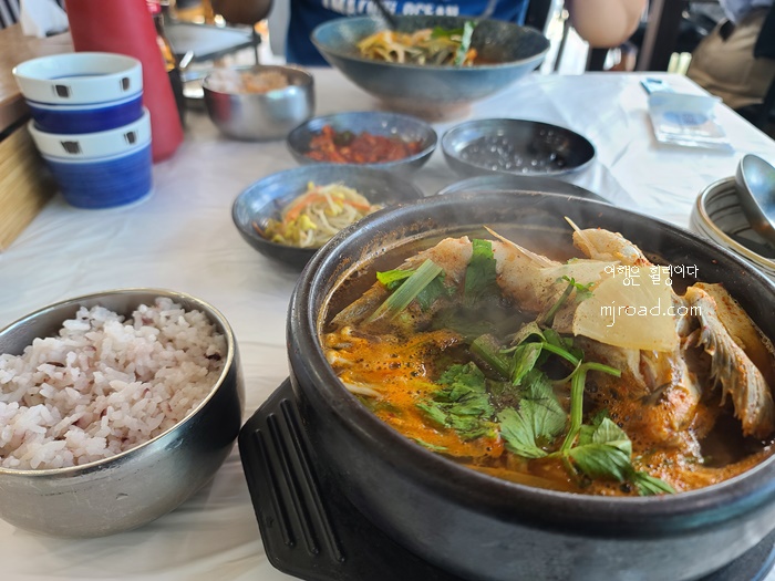 매운탕이 끓여져 나오는 뚝배기도 상당히 커서 2인 뚝배기라는 생각까지 들 정도다. 우럭 한 마리 크기도 제법 크고 살도 튼실하니 많아서 먹을만 하다라는 말이 절로 들 정도다.