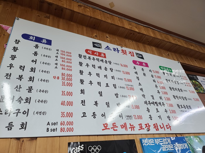 주소 - 제주시 구좌읍 해맞이 해안로 1240-3 1층 소라횟집
