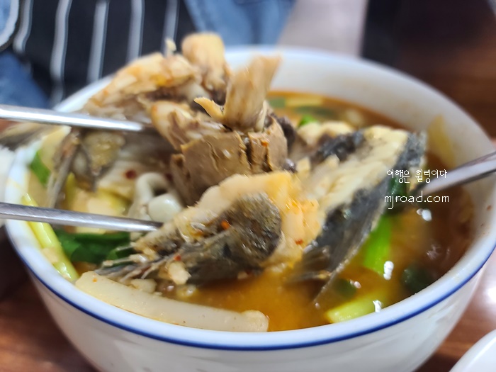 무엇보다도 우럭 한 마리가 들어가 있어 그런지 이것저것 먹는 재미가 솔솔 하다. 활우럭을 사용해서 내장도 같이 끓여낸 모습이다. 양도 푸짐하고 맛도 괜찮았던 것 같다. 왜 이곳 주변 사람들이 이곳에서 매운탕을 많이 주문하는지 이해가 가는 대목이었다. 한마디로 신선해서 좋았던 것 같다.