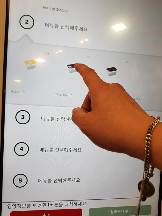 소스는 무료로 원하는 것들을 선택할 수 있습니다. 전 스위트 칠리 소스와 케이준 소스를 주문했습니다.