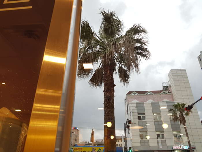 잠깐 기다리는 동안 바깥 풍경 사진 한 컷 찍었습니다. 제주도 느낌이 제대로 나는 바깥 풍경이죠.