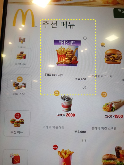 [ 맥도날드에서 판매하는 BTS 세트메뉴는 이렇습니다 ]