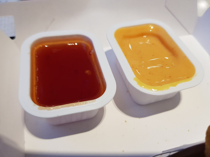 소스는 무료로 원하는 것들을 선택할 수 있습니다. 전 스위트 칠리 소스와 케이준 소스를 주문했습니다.