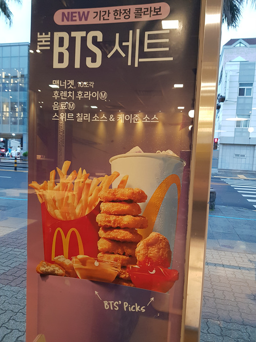 다른 곳에선 없어서 못 먹어 본다는 BTS 세트메뉴... 제주도에선 쉽게 접할 수 있어 좋았네요. 하여간 SNS에서 난리가 날 정도로 인기가 대단하다고 하니 한 번 먹어 본 걸로 만족합니다. 이번 달까지 한정 콜라보 행사를 한다고 하니 아직 먹어 보지 않으신 분들은 참고 하시면 될 것 같습니다.