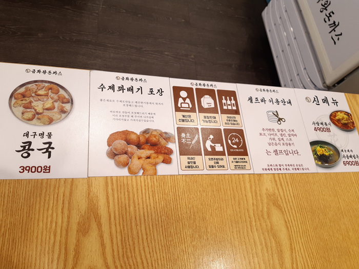 이 집은 돈까스 뿐만 아니라 콩국이나 해장국도 팔고 있습니다. 특이하다면 어느 메뉴나 수제꽈배기를 맛보라고 올려 주는게 특이합니다.