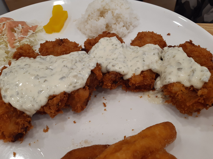 우린 생선까스와 돈까스를 주문했습니다. 돈까스는 예전에 한 번 먹었기에 생선까스도 한 번 주문 해 보니 이 또한 양이 엄청나더군요.