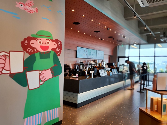 카페는 넓은데 스타벅스 굿즈는 생각보다 많지 않았다. 하지만 카페 모든 층들이 통창으로 이루어져 있어 오션뷰를 보러 이곳에 오는구나! 하는 생각이 자연스럽게 들었다. 1층에는 주문을 받고 2층에서 커피를 마실 수 있다. 물론 3층이라고 함은 테라스인데 그곳에서 바다를 보며 마실 수 있는 공간이 있어 좌석은 넉넉하다.