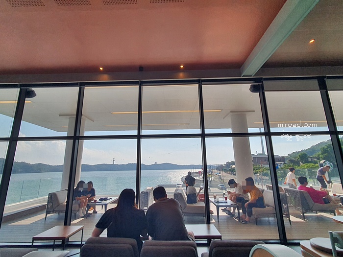 내가 간 날은 낮기온이 33도를 육박 했음에도 에어컨 빵빵 나오는 실내가 아닌 바닷바람 맡으며 야외에서 커피를 드시는 분들은 은근히 많았다. 더위보다는 낭만을 택한 분들이라고나 할까... 대단해 보이기도 했다.