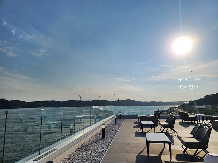 2층에서 커피 한 잔의 여유를 만끽하고 3층 야외 테라스 즉, 루프탑에 가 봤다. 땅거미가 늬엇늬엇 질 무렵이라서 그런지 기온은 조금 내려가서 바닷바람이 시원했다. 저녁에 이곳에 앉아서 차 한 잔의 여유 꽤나 낭만이 가득할 듯했다. 여행의 일정이 빠듯해 우린 잠깐 동안만의 여유만 느끼고 내려갔다.