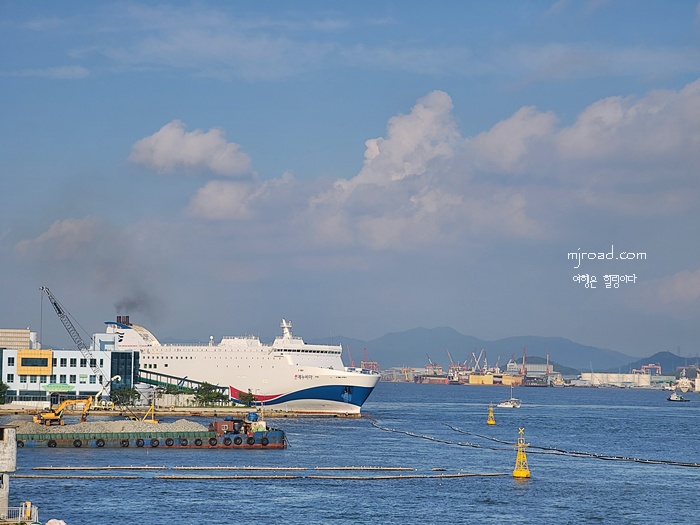 어디서 많이 본 듯한 배가 지나갔다. 혹시 제주도 가는 배인가? 참 친근하게 느껴졌다. 여행의 묘미는 생각지도 못한 뷰를 보고 생각에 잠기는 그런 여유로움이 아닐까 싶다.