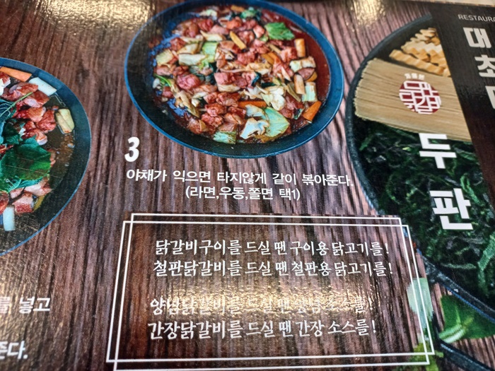 셀프로 만들어 먹는 구이다 보니 만들어 먹는 방법도 자세히 나와 있습니다. 대부분 처음엔 닭갈비로 시작하더군요. 그리고 각종 고기를 먹고 싶다면 불판만 바꾸면 되는데요. 불판 교환비 2,000원만 지불하면 고기전용 불판도 교체해 줍니다.