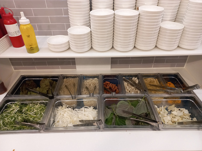 마치 뷔페같은 이 느낌은 뭐죠? 호텔 뷔페에서 보는 듯한 착각이 든 정갈한 샐러드바 모습이었습니다.