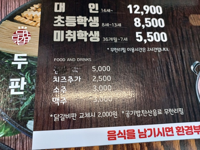 무한리필 가면 시간이 늘 궁금하실텐데요. 대부분 2시간입니다. 사실 직접 먹어 보면 아시겠지만 2시간이 촉박해 보일지 몰라도 1시간 정도면 충분하더군요. 뭐...술을 한 잔 하시는 분들은 2시간의 식사시간이 들겠지만요..