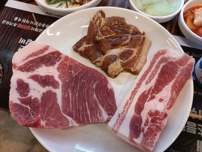 고기도 생고기, 냉동고기, 양념된 고기등 다양해 먹고 싶은 만큼 조금씩 가져다 구워 드시면 됩니다. 개인적으로 닭갈비 보다 고기류가 맛있었습니다.