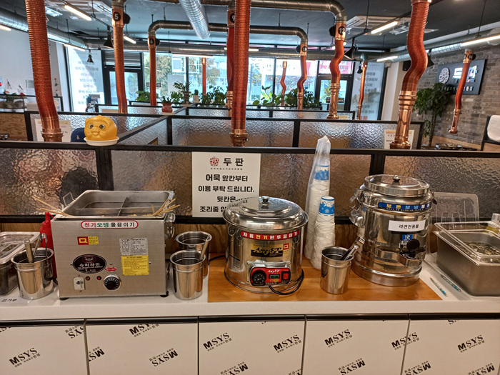그리고 바로 뒷편에는 오뎅바도 있고 된장국을 끓여 먹게끔 잘 준비되어 있었습니다. 참고로 밥도 무한리필입니다.