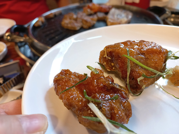 고기가 익을 동안 셀프 샐러드바에 가서 먹고 싶은 것을 가져다 먼저 먹어 봤습니다. 오~~~ 그런데 시중에 파는 치킨의 맛을 여기서 느끼다니... 갓 구워낸 치킨등 다양한 음식들을 따뜻할때 먹을 수 있어 너무 좋더라고요. 물론 싱싱하고요.