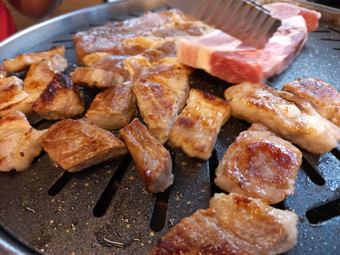 2,000원만 지불하면 고기전용 불판이 나옵니다. 여기에 원하는 고기류를 가져다 구워 드시면 됩니다.