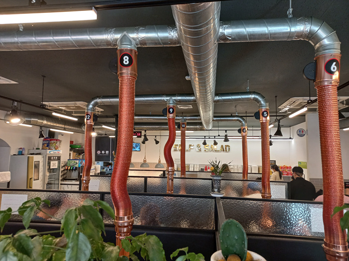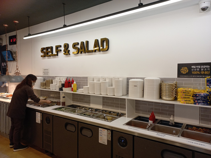 마치 뷔페같은 이 느낌은 뭐죠? 호텔 뷔페에서 보는 듯한 착각이 든 정갈한 샐러드바 모습이었습니다.