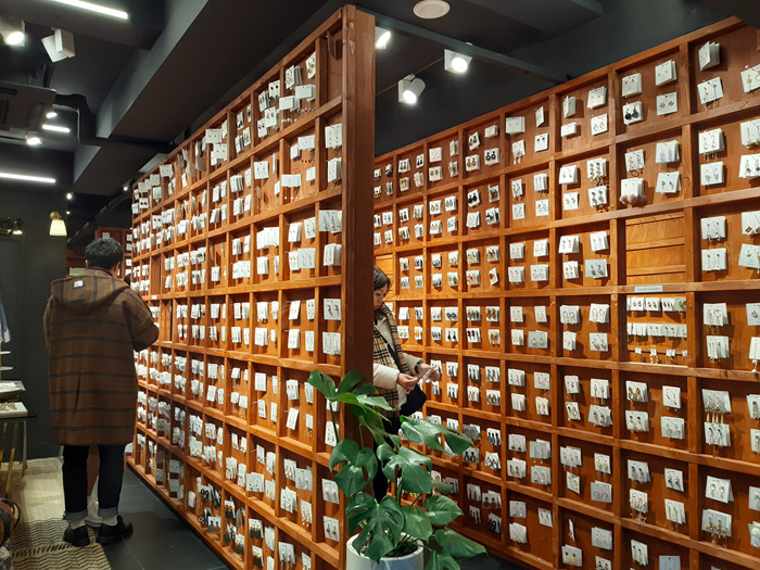 ' 여기가 액세서리 가게 맞아? ' 할 정도로 정말 독특한 콘셉트의 액세서리 가게를 지나가다 봤습니다. 처음에 봤을 때는 번쩍번쩍 조명이 화려해 금은방 같기고 했고 고급 시계를 파는 곳 같기고 했지요. 가까이 가서 보니 뭔가 눈에 띄었습니다. 그건 바로 귀걸이, 반지 등을 걸어 놓은 액세서리였습니다.