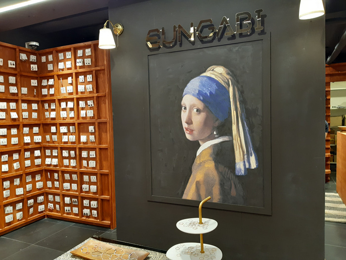 ' 여기가 액세서리 가게 맞아? ' 할 정도로 정말 독특한 콘셉트의 액세서리 가게를 지나가다 봤습니다. 처음에 봤을 때는 번쩍번쩍 조명이 화려해 금은방 같기고 했고 고급 시계를 파는 곳 같기고 했지요. 가까이 가서 보니 뭔가 눈에 띄었습니다. 그건 바로 귀걸이, 반지 등을 걸어 놓은 액세서리였습니다.