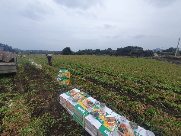 봄 같은 날씨에 수확이라 밭에서 먹으면 소풍 나온 듯 밥 맛도 좋고 제주도만의 신선한 공기에 건강해지는 느낌이다. 지금 한창인 당근 수확은 비가 오면 하기 힘들기 때문에 농사 짓는 사람들 마음이 다 그렇듯 당근 수확철 만큼은 날씨가 좋길 바랄 뿐이다.