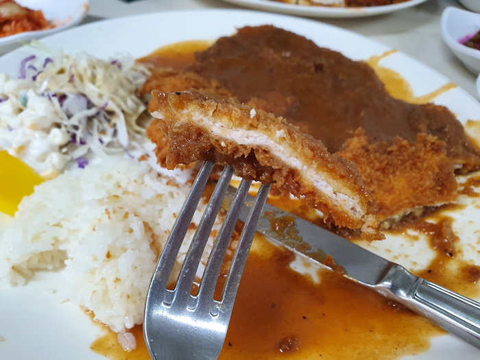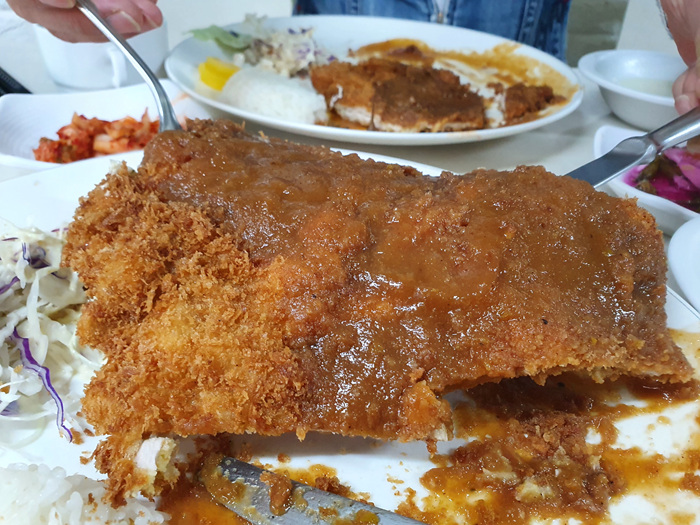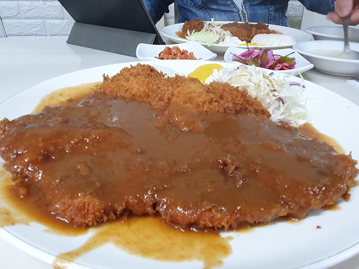 나름대로 맛도 괜찮은데 양이 워낙 많다 보니 어떤 분들은 쿠킹포일에 남은 돈가스를 포장해 가기도 하십니다.