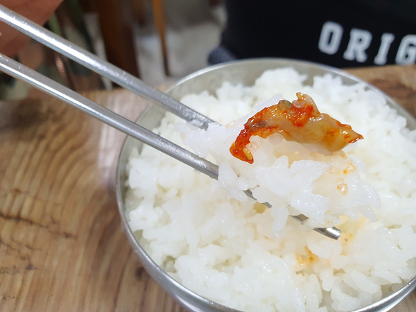 뽀얀 쌀밥에 각종 젓갈과 반찬을 같이 먹는 것만으로도 행복감이 밀려왔다.