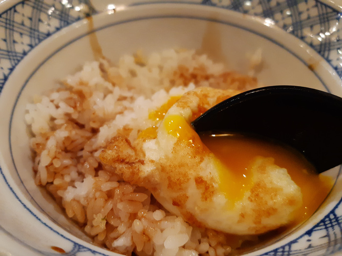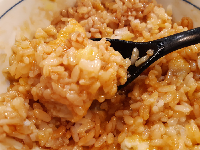튀김을 다 먹고 나면 아래 밥이 있는데 간장을 섞어서 잘 비벼 먹으면 됩니다. 전 계란 한 개 남겨두고 같이 비벼 먹었습니다. 그냥 비비는 것 보다 훨씬 괜찮은 맛이었습니다.