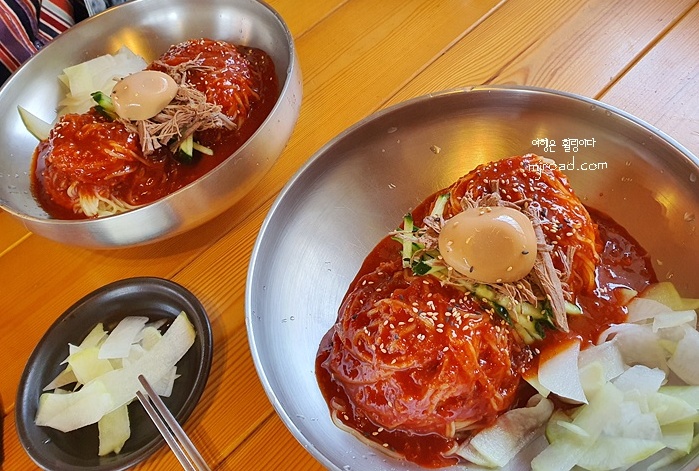 내부는 깔끔하고 일하시는 분들도 친절하다. 여기서 재미 있는 것은 밀면이 보통, 반곱배기, 곱배기 다 가격이 같다는 것이다. 그런 이유로 대부분 사람들이 곱배기를 주문하는 분들이 많았던 것 같다. 우리도 아침, 점심겸으로 먹기 위해 와서인지 많이 출출해서 곱배기를 주문했다.