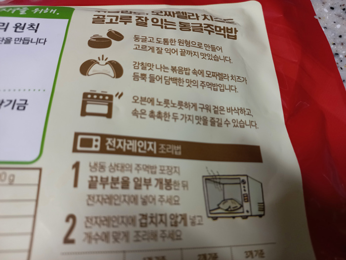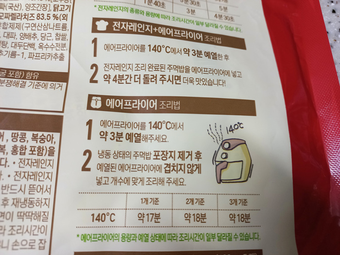 참고로 전자렌지 뿐만 아니라 오븐이나 에어프라이어에 조리해 먹어도 된다. 단, 예열하고 기다리기 귀찮아 난 전자렌지를 택했다.