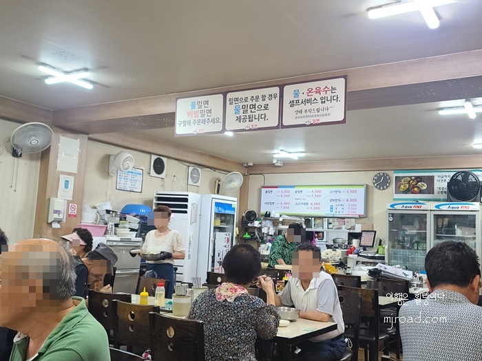 키오스크는 따로 없고 자리에 앉으면 종업원이 메뉴 주문을 받고 바로 선결재 방식이다. 종업원들도 많고 나름대로 친절하다. 캐리어를 끌고 오는 여행객들은 입구에서 캐리어를 맡아 준다. 편하게 식사를 하라는 의미도 있고 늘 사람들로 북적이다 보니 편의상 그런 방침인 듯했다. 내가 간 날은 점심시간과 맞물려서 그런지 직장인들도 많이 왔고 나이 드신 어르신들은 한 끼 식사를 저렴한 가격에 드시기 위해 많이 오셨다. 하여간 부산 정통 밀면이라고 소문이 자자해 갔는데 역시나 맛은 괜찮았다. 친절함과 맛은 좋았지만 주변 환경이 조금 아쉬운 부분이 있긴 했다.