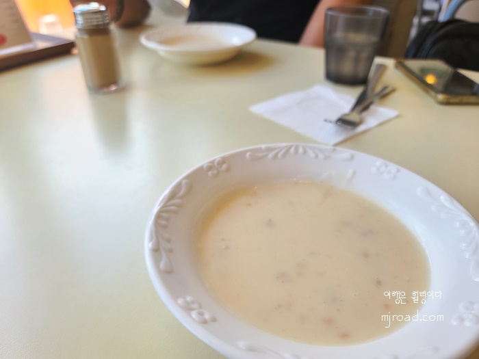 우린 기본 돈까스와 치즈 돈까스를 주문했다. 경양식 돈까스 전문점이라 스프부터 나온다. 사실 개인적으로 난 일식 돈까스를 좋아하는 편이긴 하지만 워낙 맛있다고 소문이 자자해 일단 한 번 들어가 보자는 마음으로 왔다.